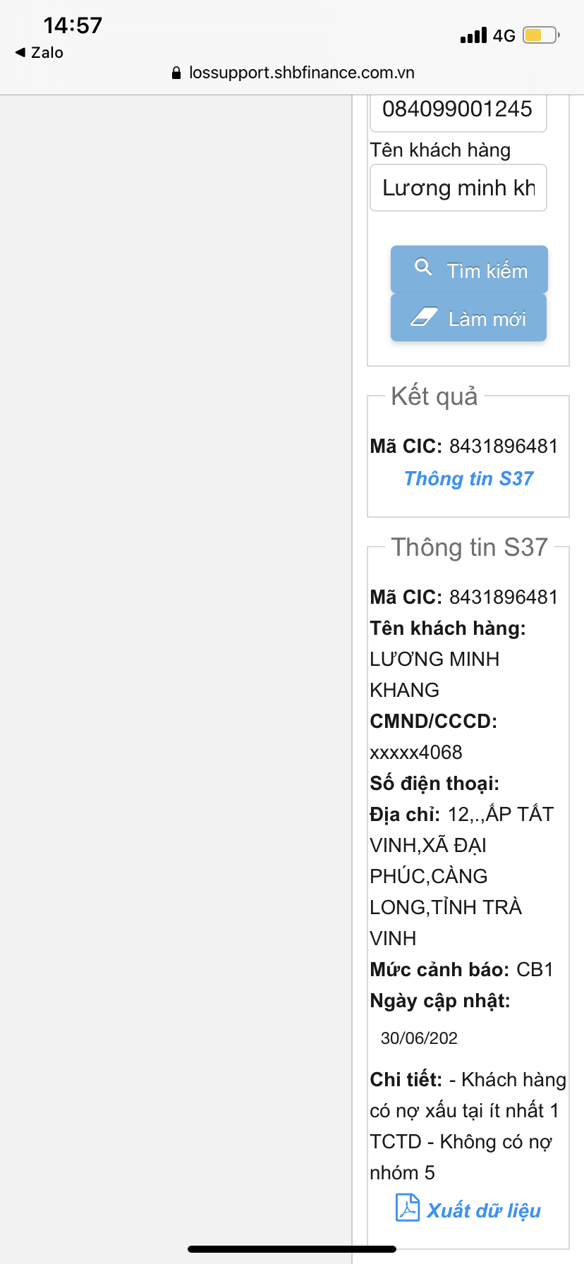 Thông báo: Khách hàng thuộc đối tượng có mức cảnh nợ xấu tính đến ngày 30/06/2022 |