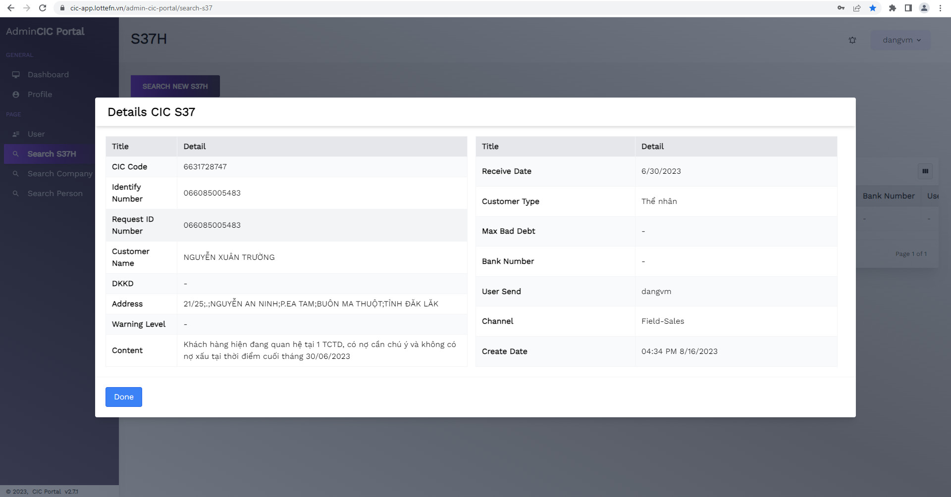 | STT | Cập nhật | Họ và Tên | CCCD | Code | Khu Vực | Nghề nghiệp | Danh mục | Tình Trạng | Tổ Chức | Trạng thái | Team | Chức Vụ | Chú Thích Thông Tin |